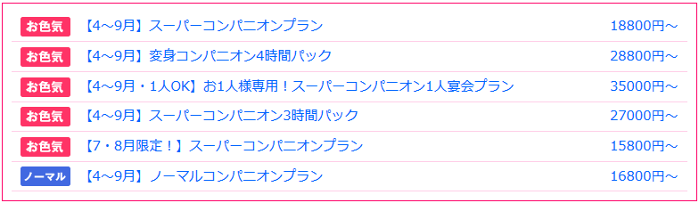 プランもお1人様・ロング・変身・ノーマルも多彩です。