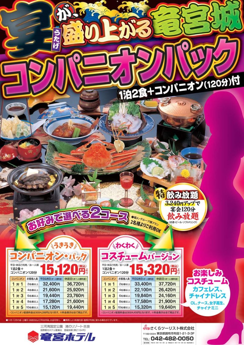 コンパニオン勿論、地魚料理に定評あり、二重の楽しみを通年堪能できます。