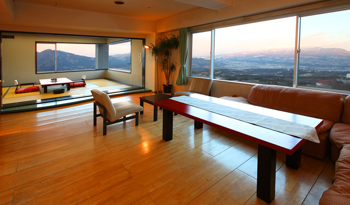 展望パノラマルームは5階にあり眺望抜群のスペシャルなお部屋です。赤城山、日光連山、谷川岳など大パノラマをのぞめます。