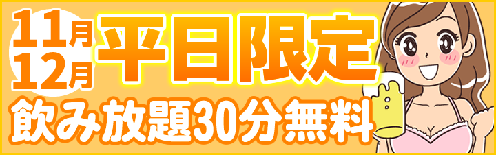 ※30分飲み放題延長不可のお宿はキャンペーン適用外となります。