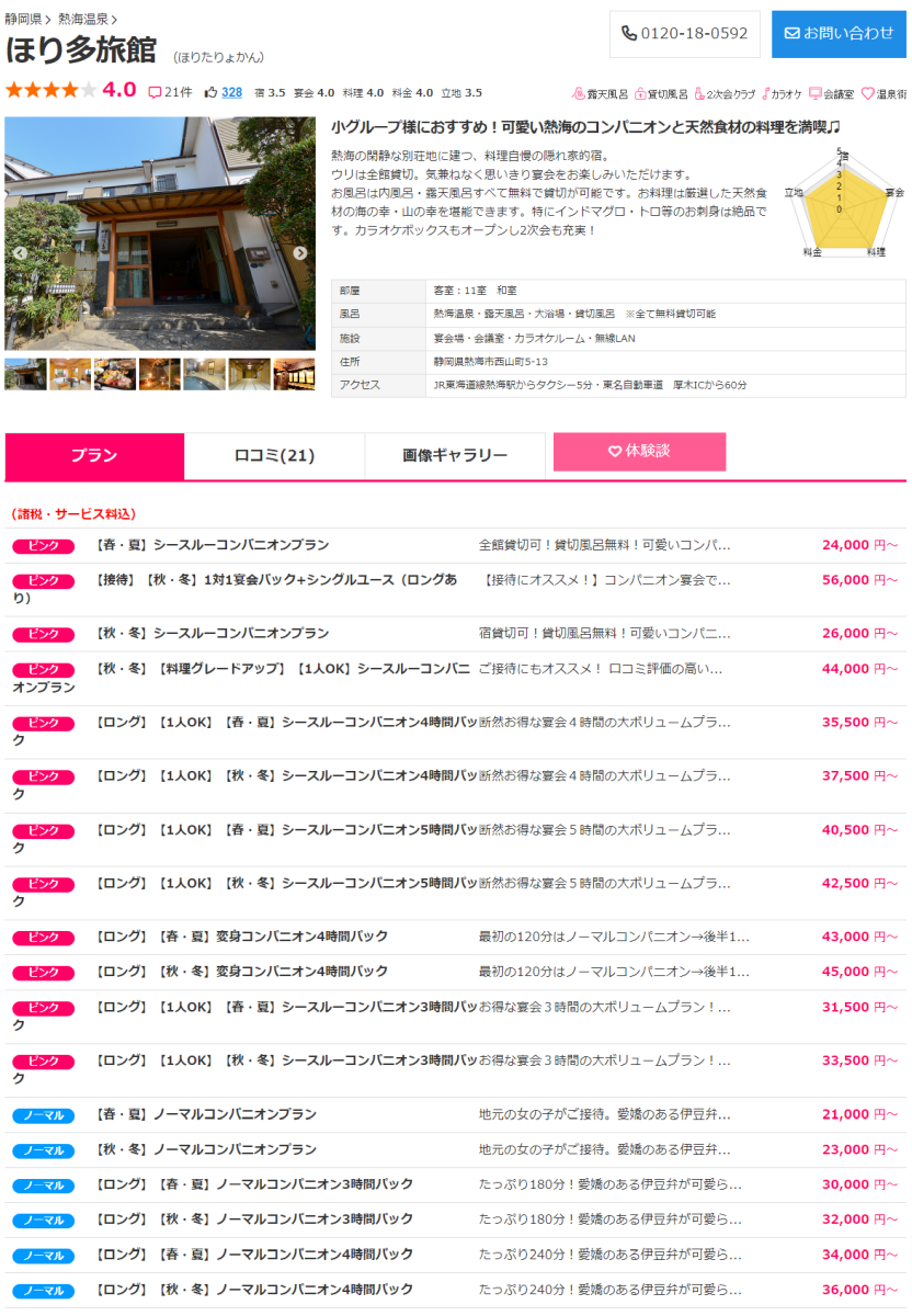 (※プラン詳細は、コンパニオン宴会.com:熱海温泉-ほり多旅館の詳細 ページへ)