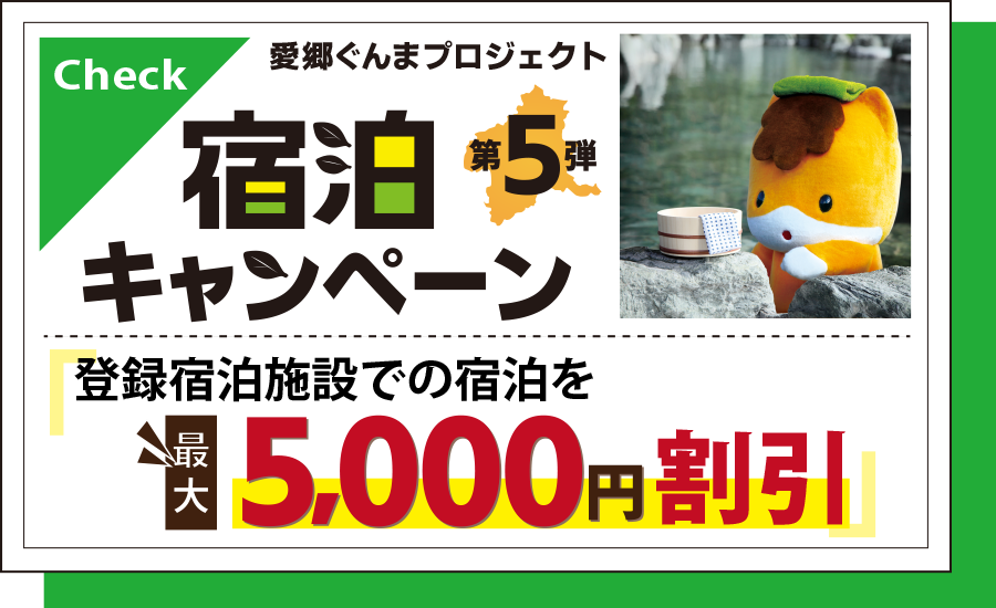 ☞《群馬県 伊香保温泉》愛郷ぐんまプロジェクト第4弾「宿泊キャンペーン」の詳細はこちらから!