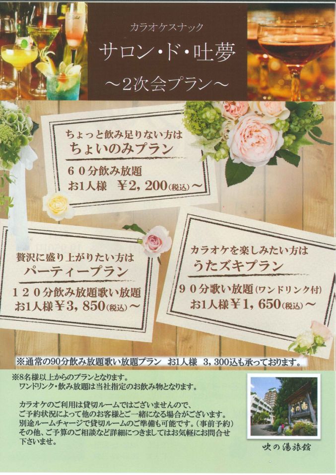 ※ワンドリンク・飲み放題はお宿指定のお飲み物となります。