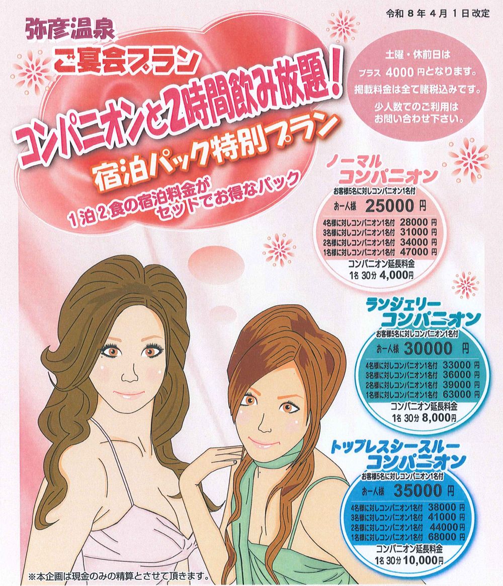 1泊2食+コンパニオン120分+飲み放題120分